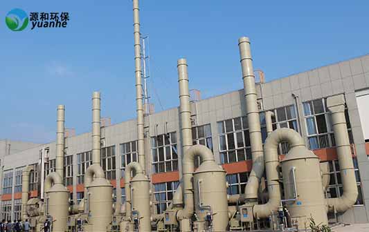 立式洗滌塔,有害的廢氣從塔體的下部進(jìn)入,立式洗滌塔內(nèi)部設(shè)有一定高度的填料層廢氣自下而上穿過填料層,最后從塔頂排出。同時從塔體的上部設(shè)有噴淋系統(tǒng),利用清水作循環(huán)吸收液,循環(huán)水從塔體的上部的布水器噴淋至填料層潤濕填料表面形成流動的液膜。填料層內(nèi)氣、液兩相呈逆流流動,氣液兩項在塔內(nèi)逆流接觸,利用有害廢氣在吸收劑中的一定的溶解度,可溶的組分不斷溶入吸收液中,達(dá)到降低氣體中有害組分含量的目的。配添加適當(dāng)量的藥劑,有害廢氣不斷被吸收或是被化學(xué)反應(yīng)去除掉,因此在上升氣流中的濃度愈來愈低,到塔頂時達(dá)到吸收要求排出塔外。